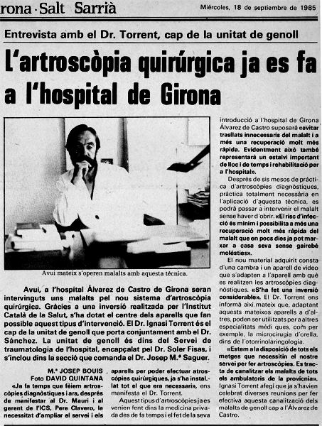 - Pionero en la técnica artroscópica de rodilla de la provincia de Girona.